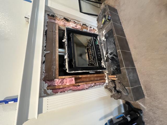 Disconnected fireplace and capped existing gas line, installed access panel in pantry for access to Gas Line, installed half-inch ball valve shut off on gas line with a gas flex for new fireplace insert, tested for leaks and cleaned up all areas of work.