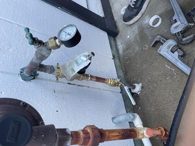 Arrived to property to install NEW PRESSURE REDUCER, removed old & installed new one with new shut off valve no leaks at this time